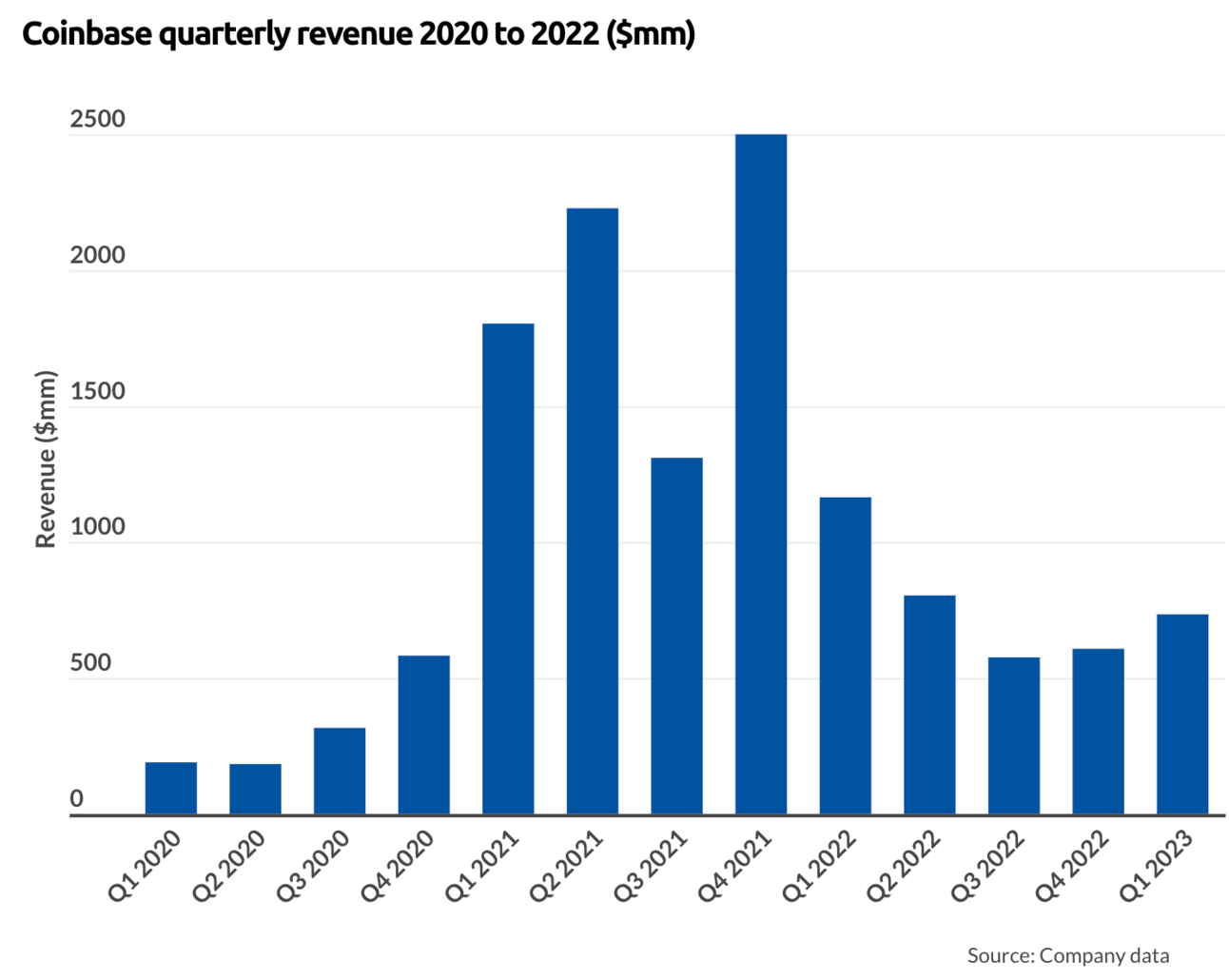Revenue Growth: Despite a decrease, Coinbase's revenues were better than expected for the three months ended 31 March 2023. The estimated sales were 665.97M, but the actual announced value was 772.53M, recording an earnings surprise of 16%. This could be a positive sign for investors looking for companies with robust revenue growth.