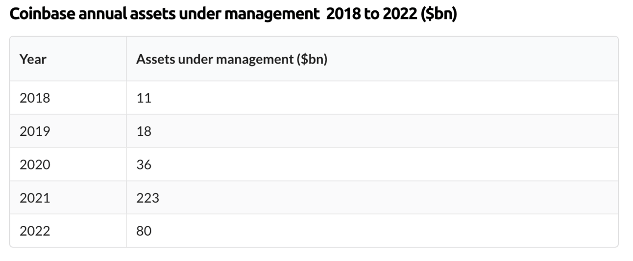 Revenue Decline: Coinbase's one-year annual revenue growth rate has declined by approximately 59.25%, indicating a significant slowdown in the company's earnings. Coinbase lost $2.6B in 2022, a huge drop from its profit of $3B in 2021. This could be a potential concern for investors looking for growth.